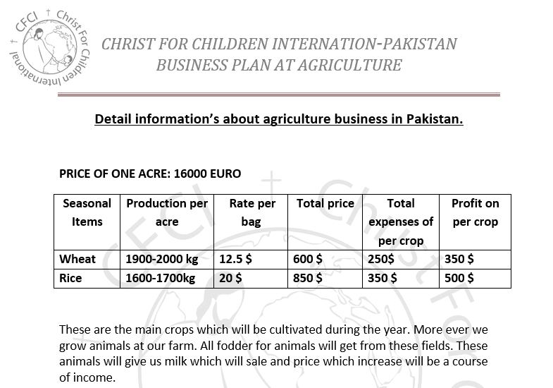 Achat de 5 acres de terrain agricole pour alimenter toutes les églises, les écoles et les orphelinats CFCI au Pakistan !!!